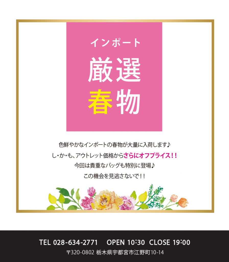 【3/16(木)・17(金)】厳選春物 第2弾!(宇都宮店)